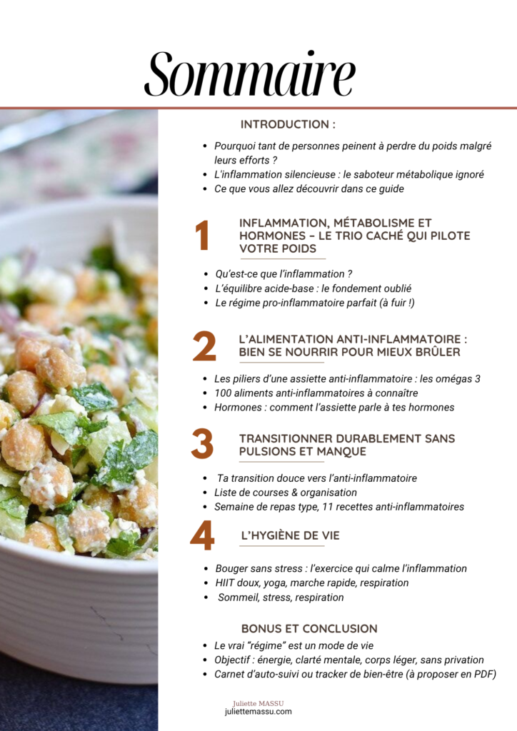 Ce guide te permettra de tout comprendre sur l’inflammation, savoir comment l’éviter mais surtout connaître les impacts de ton alimentation quotidienne sur ta santé (que tu vois -ton physique- et sur ce que tu ne vois pas -à l’intérieur-)